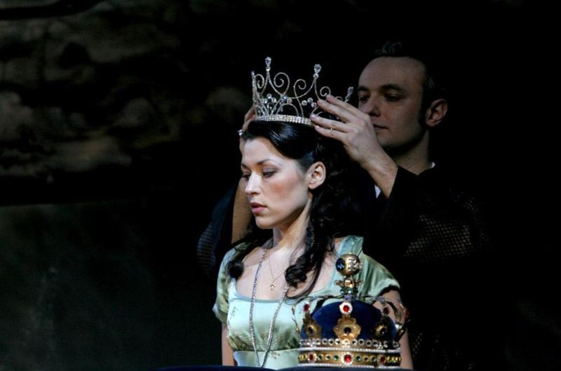 Переходя к музыкальной стороне постановки, сразу хочется, до поры до времени оставив протагониста за рамками рассмотрения, сосредоточиться на замечательном ансамбле женских голосов, ибо он стал по-настоящему приятным открытием премьеры. Очень трудно отдать кому-либо предпочтение, ведь характеры персонажей такие разные! Образ романтически-мечтательного, восторженно-влюбленного и жаждущего подвигов Идаманта подкупает неподдельно искренним воплощением Натальи Евстафьевой. Благодаря Анастасии Калагиной, исполнительнице партии Илии, двойственную участь несчастной пленницы, заставляющую делать выбор между чувством и долгом, разделяешь буквально всем сердцем, безотчетно подпадая под влияние властной музыкальной стихии робко-беззащитной и наивно-сентиментальной героини. Огненно-напористый и отчаянно-решительный характер Электры темпераментная певица-актриса Жанна Домбровская наделяет чертами свирепой фурии, тигрицы, готовящейся к своему смертельному прыжку.