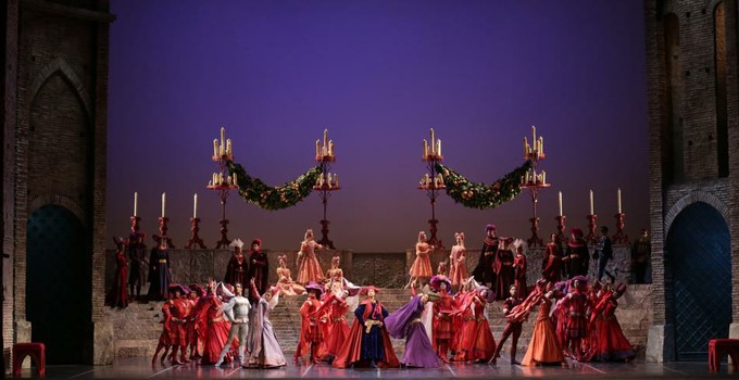 Иное дело — «серьезный» балет «Ромео и Джульетта» Прокофьева. Миланцы с большой ответственностью подошли к этой постановке. Они очень старались и в чем-то даже основательно перестарались. Сказанное прежде всего касается роскошных декораций, выполненных в стиле пламенеющей готики и богатых, присущих эпохе костюмов. Вместе с ними в спектакле сверхграмотных художников, естественно, появился и принцип «обратной перспективы», присущий изобразительному искусству того времени. Но он не пошел на пользу балету Макмиллана.