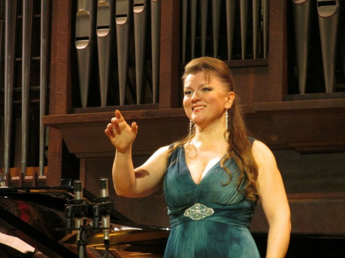 Любовь Петрова действительно немало поет в Мет, как, впрочем, и в ряде других мест. Эта молодая певица обратила на себя внимание во второй половине 90-х, когда за первыми выступлениями в Новой Опере последовало участие в мастер-классах Ренаты Скотто, а затем — победа на Конкурсе имени Н.А.Римского-Корсакова в Петербурге. Но в премьерных спектаклях Новой Оперы публика ее так и не услышала, а потом Петрова и вовсе почти исчезла с российского горизонта, отправившись покорять западные сцены. И вот приехала в Москву с сольным концертом, организованным в стенах театра, где она начинала, по инициативе концертмейстера Анны Маргулис.