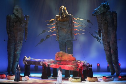 Среди изощренных и подчас далеких от Вагнера режиссерских прочтений «Кольца», прошедших за последние полвека на мировых сценах (кто-то из американских критиков жестоко, но метко «припечатал» их, назвав «типичным авангардистским евромусором»), рецензенты выделили постановку Мариинского театра. Благодаря сценографии Георгия Цыпина, свету Глеба Фильштинского, костюмам Татьяны Ногиновой мариинское «Кольцо» привлекло своим вселенским (а стало быть, и «русским»!) характером.