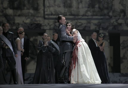 Ведь сэр Артур появляется на своей роковой свадьбе с Лючией в кителе правительственного чиновника гитлеровской администрации. Этот антифашистский посыл закрепляется пальбой из пистолета, сопровождающей исполнение знаменитой каденции, в финале которой Лючия шальной пулей убивает начальника охраны Норманна.