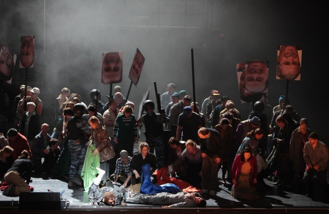 Один из протагонистов оперы — народ — представляет собой гетерогенную массу, проповедующую насилие, и только: война всех против всех...