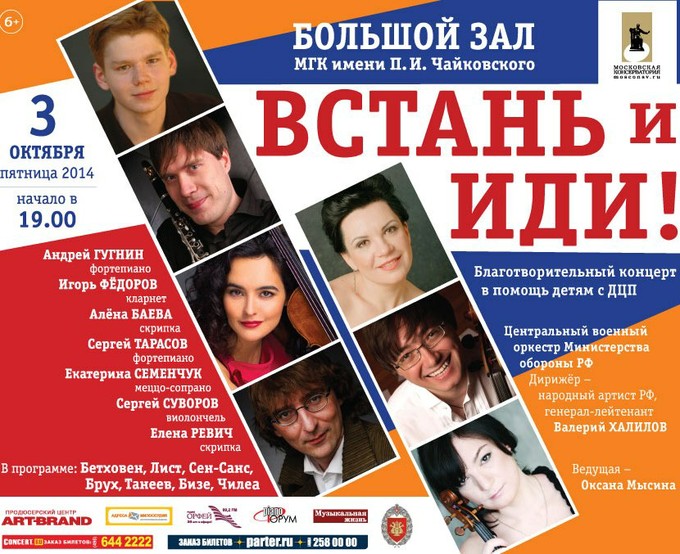 Продюсерский центр «Арт-Брэнд», Московская государственная консерватория им. П. И. Чайковского и Благотворительный фонд «Адреса милосердия» представляют второй концерт-акцию «Встань и иди!» в помощь детям с ДЦП.