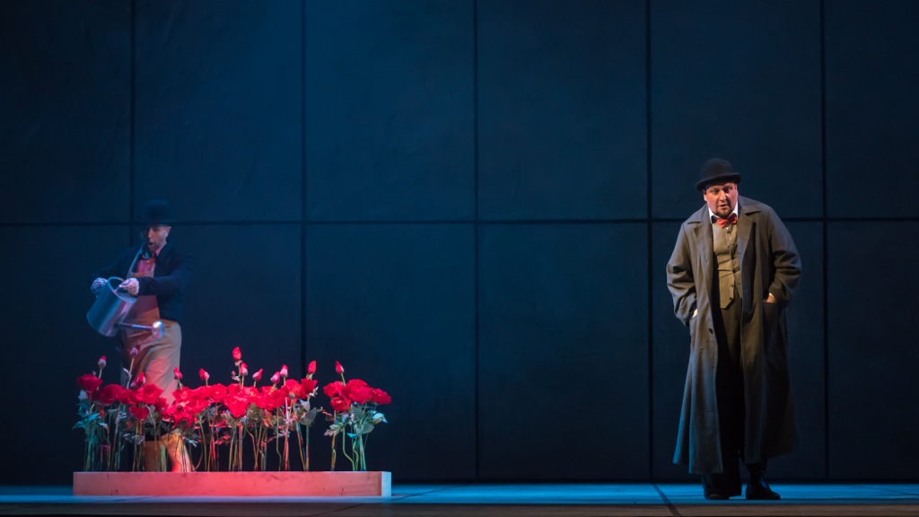 Здесь он — беззаботный садовник, мирно поливающий маки, и вовсе не факт, что это он убил Джильду — в момент её гибели свет на сцене гаснет…