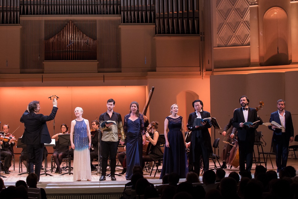 И это было очень кстати, так как «Ксеркс» Генделя, насколько это отложилось в моей памяти, не звучал в столице давно – со времен гастролей Английской национальной оперы, состоявшихся на сцене Большого театра в 1990 году. Тогда сей опус в традициях именно этой зарубежной труппы мы услышали в эквиритмическом английском переводе, что испытать подлинный восторг от той давней продукции нисколько не помешало. На сей раз «Ксеркс» предстал перед нами в вербальных одеждах своего оригинального итальянского либретто, и стремление к «аутентичности» нас, казалось бы, должно было однозначно порадовать. Но в итоге впечатления от нынешнего московского проекта, состоявшегося в Концертном зале имени Чайковского 12 апреля, сложились весьма неоднозначные.