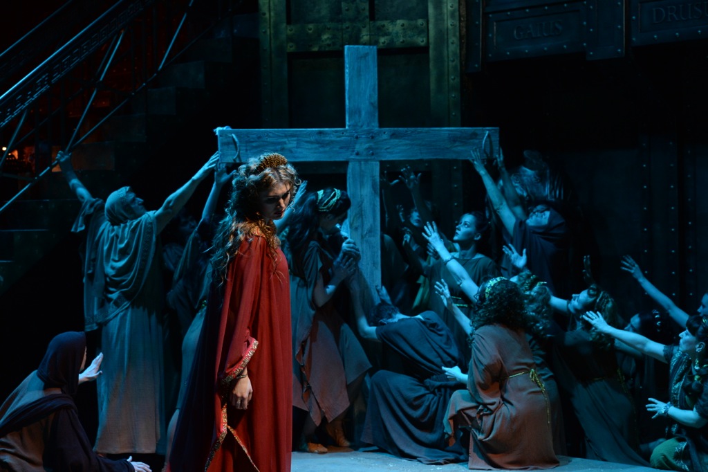 Сакральность происходящего всё равно соблюдена. Рушится стена, высвечивается крест, чудом спасшийся от преторианцев Старик из первого акта (апостол Пётр или Павел?) благословляет Сервилию и всех римлян. Ох, спросить бы о финальных чувствах кого-то воцерковлённого!