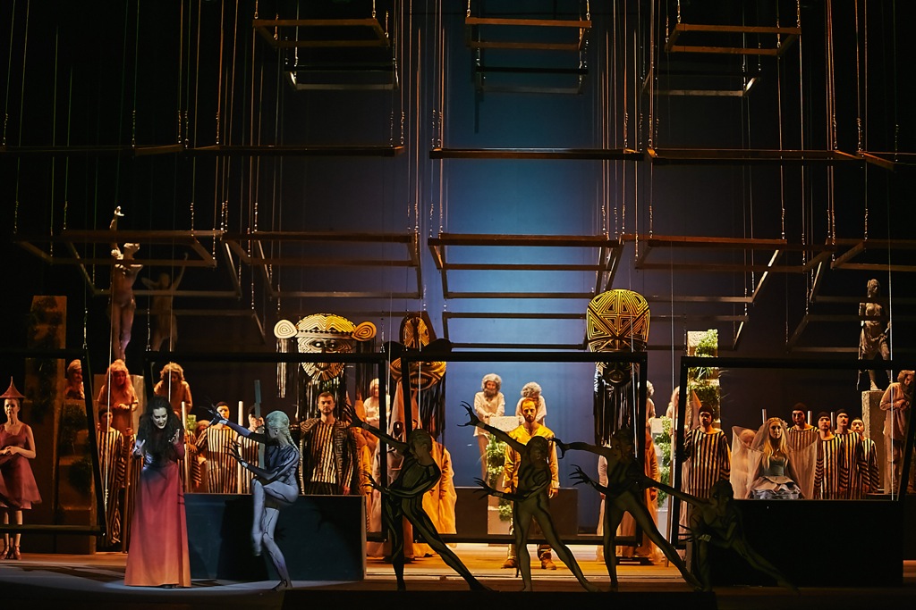 Но оригинальное французское либретто Франсуа-Бенуа Гофмана, в основе которого лежат мотивы одноименных трагедий Еврипида и Корнеля, ожило на сцене оперного театра в рамках намеренно абстрактного, условно-символического пространства универсального общечеловеческого мифа. Как уже было сказано, на этот раз он предстал в оболочке итальянской музыкальной вербальности.
