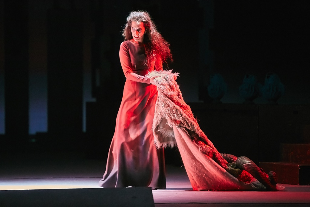 Последнюю мне и удалось услышать на шестом спектакле, и это было действительно достойное, высокопрофессиональное воплощение партии второго плана, из которой певице удалось сделать весьма запоминающуюся вокально-драматическую картинку. В партии Медеи на моем спектакле выступила приглашенная певица-сопрано из Армении Эка (Катерина) Горстка, певица участвовавшая в создании спектакля с момента его выпуска. В театре ее заметили на прошлогоднем Конкурсе имени Словцова, на котором она получила тогда всего лишь диплом за лучшее исполнение произведения Чайковского. Но, по-видимому,