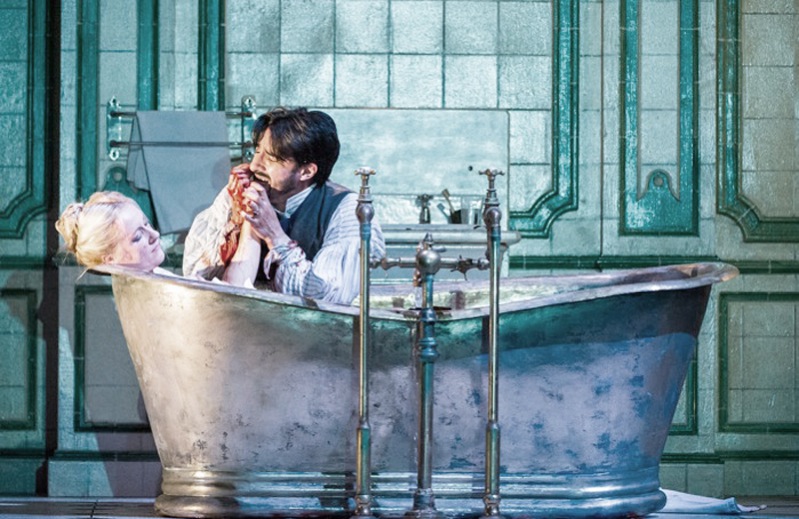 Нам не оставили никаких тайн – все «разжевали» в деталях, поднесли ко рту и хочешь не хочешь, заставили все это проглотить, и вышеописанное, и оставшиеся мелочи, такие как нюансы гардероба главной героини и детали того, что обычно происходит в ванной комнате с забеременевшей молодой женщиной, страдающей утренним токсикозом. Хорошо, что нам не дали послушать звуки смывающегося унитаза, но вода, наполнявшая ванну, была настоящей, она по-настоящему журчала, заглушая уже начавшуюся финальную арию Эдгардо. Нет слов!