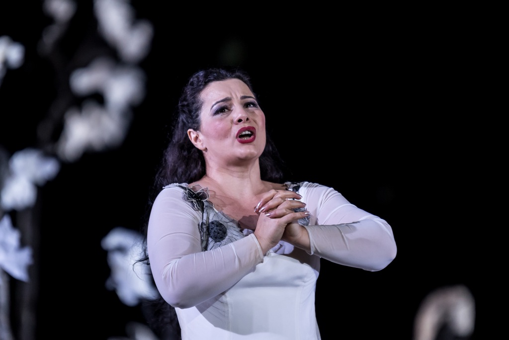 Одиннадцать спектаклей «Трубадура» поделены между двумя составами вокалистов. Мне удалось побывать на первом спектакле 2 июля и услышать два замечательных и хорошо известных нашему читателю женских голоса – армянское сопрано Лиану Арутюнян в партии Леоноры, и меццо-сопрано Екатерину Семенчук (цыганка Азучена). Двух братьев, непримиримых враждой друг к другу, исполнили итальянский тенор Франческо Мели (Манрико) и бывший югославский (именно так указала программка) баритон из Сербии Желько Лучич (Граф ди Луна).