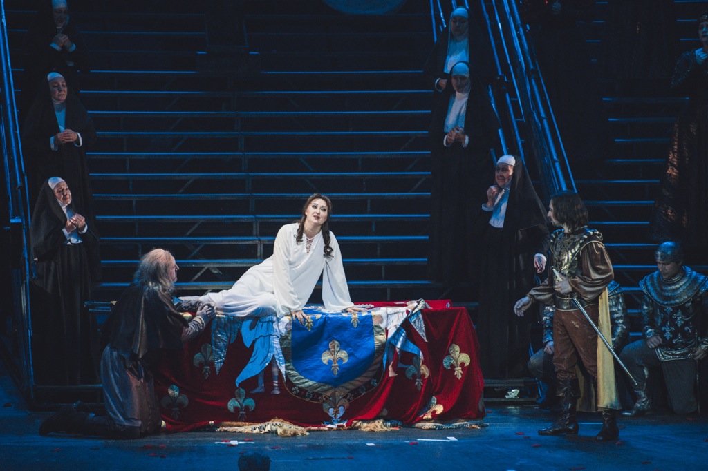 Но прямая трансляция как раз красноречиво и показала, что ничего особенного в ней ни в постановочном, ни в вокальном аспекте не было. Сопрано Анна Нетребко (Жанна) примерила на себя роль явно не из своего амплуа и должного музыкального эффекта так и не произвела. Итальянский тенор Франческо Мели (Карл VII), к которому я отношусь с большим уважением и которого вживую слышал неоднократно, на сей раз явил лишь вполне качественную добротность. В партии Жака (по итальянскому либретто – Джакомо) определенно недоставало заявленного испанского баритона Карлоса Альвареса, которого из-за болезни экстренно заменил малоизвестный итальянец Девид Чеккони. Единственной радостью было лишь то, что функции дирижера взял на себя превосходный итальянский маэстро Риккардо Шайи. Но спеть за певцов и ему было, естественно, не под силу…