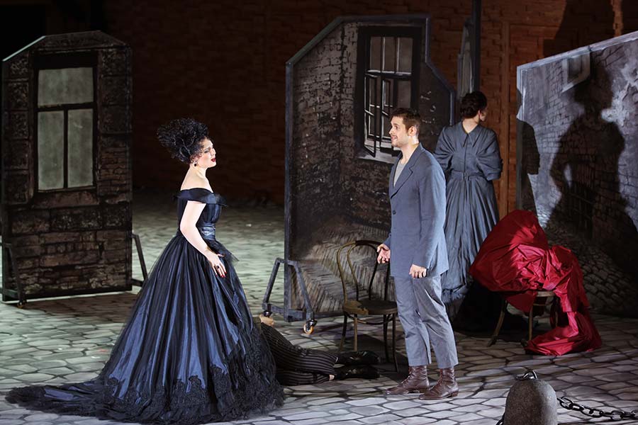 Постановщик Алексей Степанюк с честью вышел из испытания тяжёлым, иногда вязким материалом. Может быть, по большому счёту, сценическая реализация не вырвалась за пределы корректной музыкально-театральной констатации музыки и сюжета. Но спектакль сделан мастеровито, стильно и красиво в рамках избранной лаконичности (Степанюк выступил и автором сценографии). Что важно – здесь есть свой особый аромат, особая атмосфера камерной доверительности, вообще присущая этому режиссёру. Это очень помогает актёрам-певцам быть живыми людьми, избегая оперной картинности. Конечно, не всем ещё молодым исполнителям удаётся соединить певческие умения с глубиной постижения характеров своих героев. Сыграть такие натуры, какие выписаны у Достоевского-Вайнберга – это высший класс сложности! Но у этих артистов, в подавляющем большинстве солистов Академии молодых певцов, есть эта самая молодость и способность увидеть своего героя глазами человека, современного началу ХХI века.