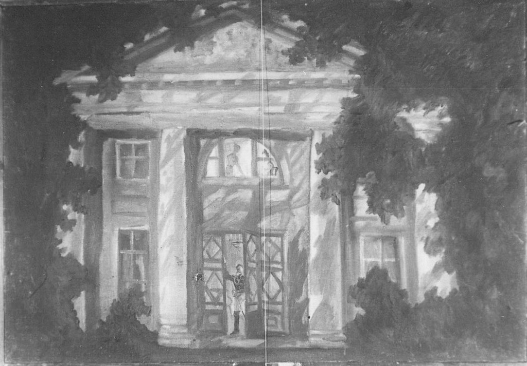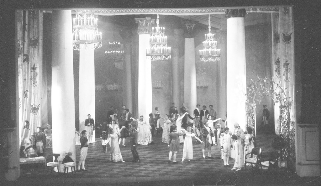 Художник Владимир Дмитриев в работе над декорациями стремился к раскрытию поэтического настроения. Его интересовала эмоциональная атмосфера оперы, колористический подтекст. Художник слышал музыку сразу в пластических и цветовых воплощениях. В пределах объема сцены МАЛЕГОТа он передал ощущение громадного пространства. Например, Валериан Богданов-Березовский вспоминал, как «после полумрака летней ночи в Отрадном, свет многоколонного бального зала, брызнувший со сцены одновременно с первыми звуками фанфар оркестра, слепил глаза».