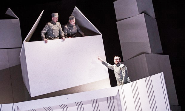 К сожалению, постановка Лорана Пелли не обладает такой же легкостью и точностью. Эту оперу очень сложно воплотить на сцене, потому что Берлиоз сократил несколько интересных сюжетных линий пьесы, заострив свое внимание лишь на одной. Пелли заполоняет сцену коробками разных размеров, символизирующие шаблоны и стереотипы общества, под которые не вписываются главные герои, они их отвергают. Это режиссерская идея займет ваш ум минут на десять. А в целом, в постановке нет романтики, комедия все больше начинает походить на заводную оперетту.