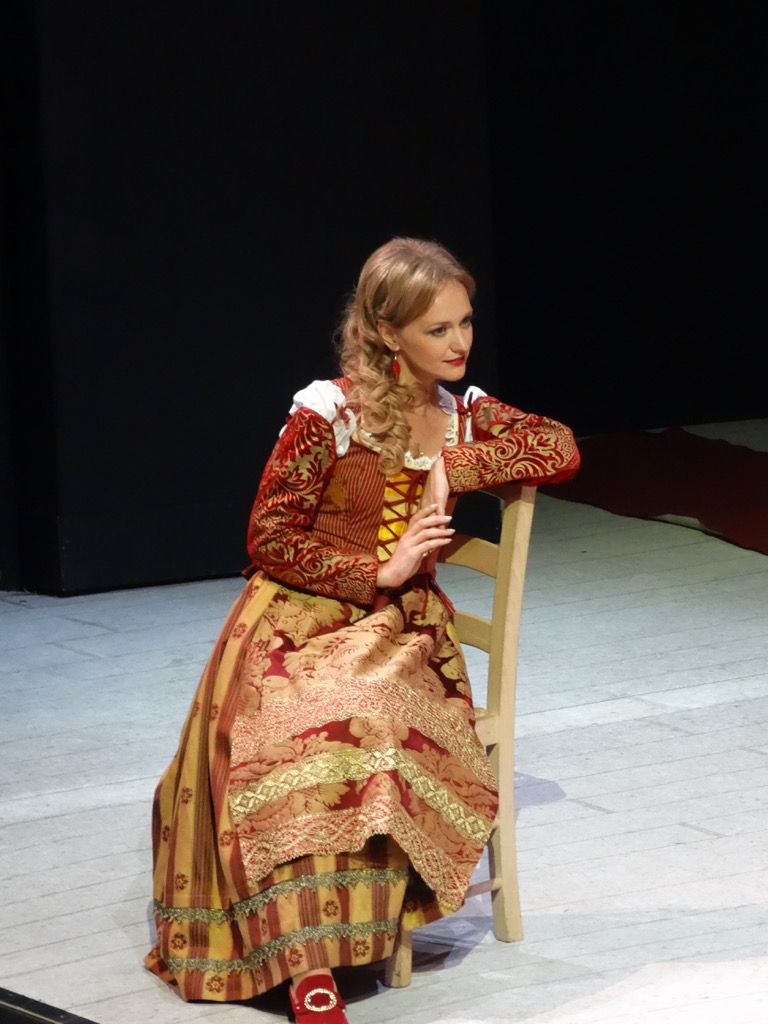 Не меньшее удовольствие доставило мне участие в постановке этой оперы в Театре Массимо Беллини в Катании в мае этого года — там была восстановлена аутентичная постановка 1831 года (т.е. спектакль и декорации, которые были созданы ещё при жизни самого Беллини). Красота костюмов, мизансцен, декораций помогли мне полнее прочувствовать мою героиню и понять атмосферу, дух и эстетику той эпохи, в которой жил и творил композитор.