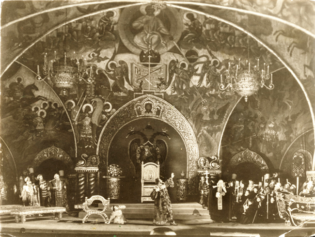 Опера Модеста Мусоргского «Борис Годунов» занимает особое место в истории русского музыкального театра. Возвращение оперного шедевра на советскую сцену состоялось в Ленинграде в 1928 году по инициативе музыковеда Бориса Асафьева. Именно ему принадлежала идея новой сценической интерпретации «Бориса Годунова», где драма преступного царя отходила на второй план, уступая место подлинно народной трагедии. Народ становился главной движущей силой оперы. В этом смысле советский музыкальный театр старался сделать из «Бориса Годунова» репертуарный хит на все времена, прославляющий праздник народной революции.