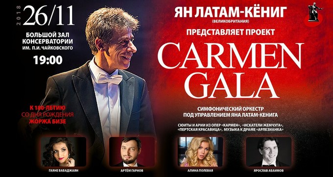 26 ноября 2018 в Большом зале Московской консерватории состоится уникальный проект «Кармен-гала», приуроченный к юбилею Жоржа Бизе.