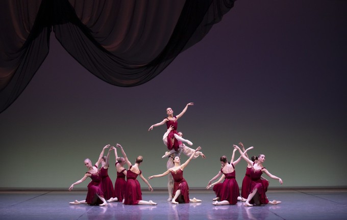Симфонический балет-дивертисмент «Брамс-Шёнберг квартет» состоит из четырех несвязанных между собой частей. Первые три – абстрактно-геометрические, и там хотелось увидеть больше механической синхронности, как раз и сообщающей балетам Баланчина их особеную красоту. Последняя часть — Rondo alla Zingarese — представляет собой вариацию на тему венгерского чардаша. По сцене летала, с развивающимися лентами, весёлая Мадока Сугаи, Карен Азатян в красных сапожках старался не отставать. Дирижировал Маркус Летинен, подаривший возможность прочувствовать, насколько угловато-современной, материальной и заострённой является оркестровка Шёнберга.