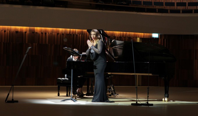 Но сначала – о «перекличке времен». Ее составили лирическая поэма итальянского композитора Джузеппе Мартуччи «Песнь воспоминаний» («La canzone dei ricordi», 1886–1887) на слова Рокко Эмануэле Пальяры и единственный бис – ария Адриенны Лекуврер «Io son l’umile ancella» из одноименной оперы Чилéа. В прошлый раз опус Мартуччи прозвучал полностью (все семь частей), в этот – только две части: вторая («Пел ручей веселую песню») и шестая («В густой лес, под мирную сень»). В прошлый раз концерт прошел в сопровождении НФОР под управлением итальянского маэстро Маурицио Бенини, в этот – под фортепиано, партию которого исполнила Мзия Бахтуридзе.