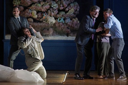 Американский бас-баритон Эван Хьюз в партии короля был вокально хорош и сценически элегантен — эксцентричный английский джентельмен. По ходу действия его герой так ничего толком и не выучил – остался ослеплённым и всецело поглощённым своими чувствами к лишенному внутреннего благородства Гавестону (румынский баритон Дьюла Орендт), которого увидел и на смертном одре в своём убийце.