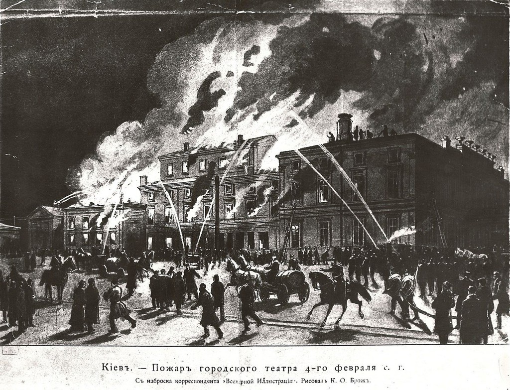 Старокиевская пожарная команда, по мнению очевидцев, показала «свою неспособность тушить пожар». Потом в городе поговаривали, что все усилия пожарных были направлены не на театр, а на находившийся рядом резервуар с нефтью и электростанцию (в театре уже функционировало электрическое освещение). Так от Городского театра остались одни стены.