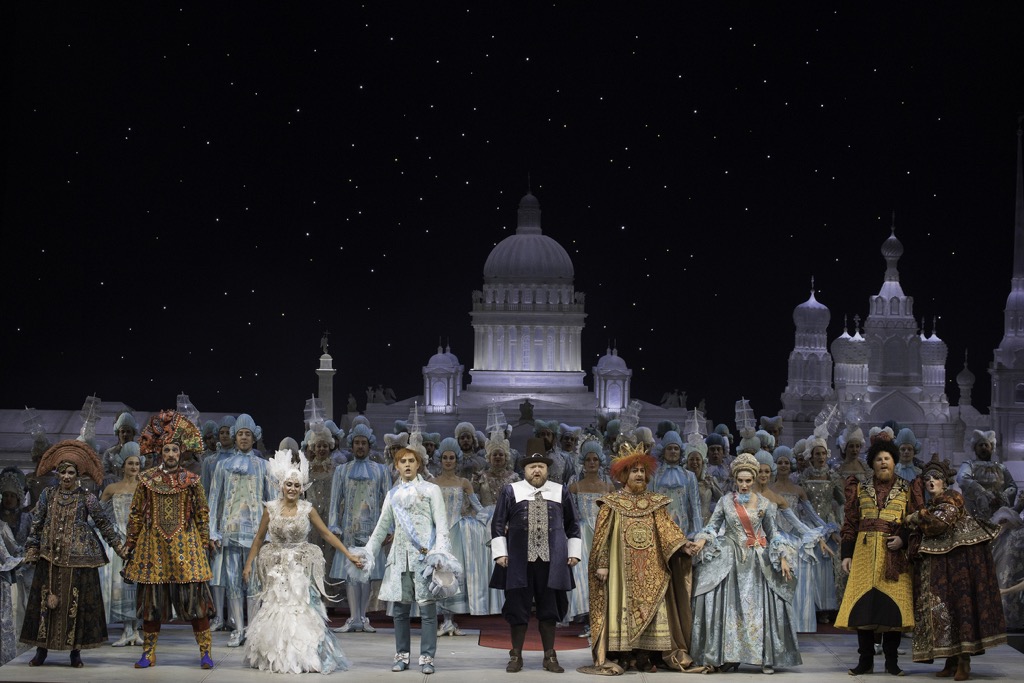 Спектакль Франдетти не исследует подтексты, не прикручивает к опере параллельную историю, а просто позволяет «Сказке о царе Салтане» остаться забавной, волшебной и доброй.