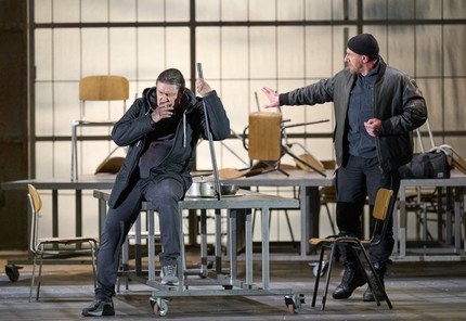 Но главным же испытанием должен стать поцелуй Кундри, который играет в этом прочтении совершенно удивительную роль: поцелуй настоящей страстной женщины возвращает уже почти бесполого гламурированного юнца к воспоминаниям о своей пацанской сущности, о своём тюремном прошлом, об Амфортасе (превосходная вокально-драматическая работа баритона Михаэля Наги), который так же потерял здесь своё мужское достоинство (копьё как фаллический символ).