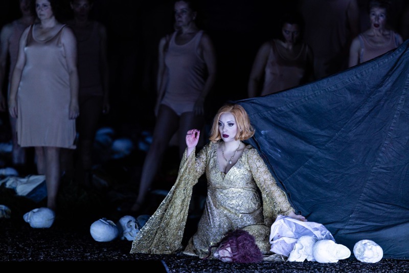 Жертвой непрофессионализма постановщика стал и Геральд Финли, выступивший в титульной партии. И дело не в возрастных особенностях звучания его голоса: в мизансценах, в которых очень трудно не сломать ногу и не вывихнуть руку, прогуливаясь по округлым черепам, и Кинлисайд – другой известный исполнитель – звучал так себе. Кроме размахивания то мечом, то ножом, то руками, Кушей не предлагает исполнителю партии Макбета вообще никаких пластических решений, и образ получается бесцветно несуразным.