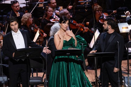 Эта постановка из репертуара театра исчезла уже давно, но ее вторым рождением с оригинальным сценографическим и костюмным оформлением, а также новой режиссерской адаптацией для новой сцены, стала «миграция» в Красноярский государственный театр оперы и балета им. Д.А. Хворостовского, где премьера состоялась 20 апреля 2024 года. А в Москве по этому названию мы соскучились, так что на обсуждаемое концертное исполнение ваш покорный слуга отправился именно с такими мыслями и воспоминаниями. Впрочем (притом, что свидетелем переноса спектакля на красноярскую сцену стать не довелось), московские воспоминания о постановке именно как о театрально-зрелищном продукте остались не слишком оптимистичные…