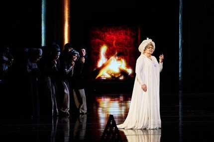 В принципе, только ради одних этих нескольких минут стоило прийти на этот нарядный спектакль с ковровым продакт-плейсментом в стиле чайханы с кальяном и роялем, но в остальном исполнение партитуры Чайковского трудно назвать удовлетворительным. В контексте общей неопрятности звучания хора, оркестра и других исполнителей знаменитая фраза Графини «Что за манеры! Что за тон! И не глядела бы… Ни танцевать, ни петь не знают!» звучала в исполнении Ольги Бородиной безжалостным приговором коллегам.
