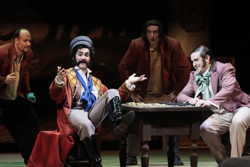При этом в музыке для глобально-философского пласта задействован и народный запев солистов, и специальный хор в оркестровой яме (вместо скрипичных групп!), в то время как в утилитарно-камерном помещичье-чиновничьем пласте на сцене, как обычно, звучит свой хор, а весьма нелегкую вокальную ношу несут на себе солисты (в том числе олицетворяющие и типажей из народа). На спектакле нельзя было не отметить, что изощренную музыкальную фактуру этого опуса вполне сноровисто смогли укротить и многочисленные солисты разных «мастей», и хор, и оркестр, и дирижер. Ансамблево-хоровые страницы – важная часть оперы, но основная вокальная нагрузка ложится на шестерых персонажей, названных выше.