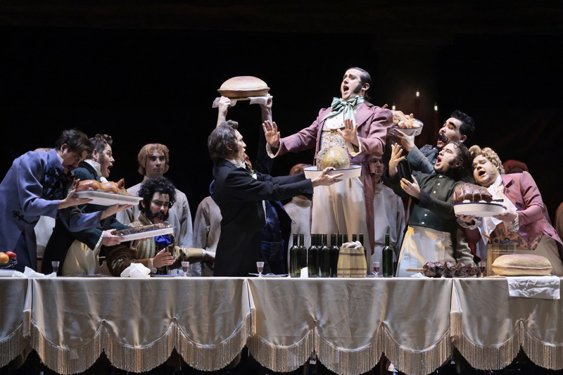 Хотя сценография более чем условна, она поразительно реалистична. И в ощущении этого важную роль также играют и совершенно изумительные костюмы, соответствующие иконографии представлений о той эпохе, и действенные, психологически емкие мизансцены, и «говорящая» пластика массовых эпизодов. Вся притягательность постановки-переноса и на сей раз заключена, прежде всего, в абсолютной «прозрачности»: считываемость целого комплекса визуальных аллегорий-символов предельно проста и в то же время впечатляюща. Но на этом как раз ведь и зиждется азбука режиссерской метóды, идущей, согласно заветам Покровского, исключительно от музыки и выстраивающей к ней в визуализации образов персонажей не отвлеченные от сюжета параллели, а действенные «перпендикуляры».
