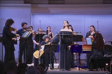 Между тем названные выше Симфонию и Сюиты автору этих строк в рамках концерта довелось услышать впервые, и, говоря о чисто инструментальных опусах, невозможно не отметить великолепное качество музицирования всего коллектива, тем более что на сей раз мы имели дело с исторически информированным исполнительством, то есть исполнением на исторических инструментах. В обсуждаемый вечер в составе оркестра, кроме струнных (скрипок, альтов, виолончелей, включая одну виолу да гамба, и контрабаса) опционально присутствовали пара гобоев, фагот и ударные. В basso continuo были заняты Дарья Гуща (клавесин) и Ася Гречищева (теорба, барочная гитара).