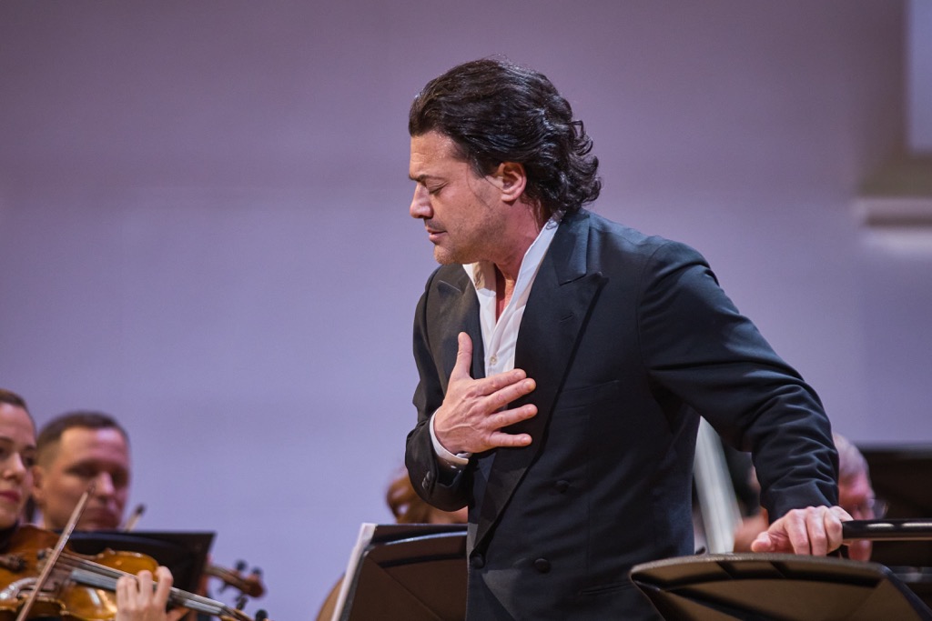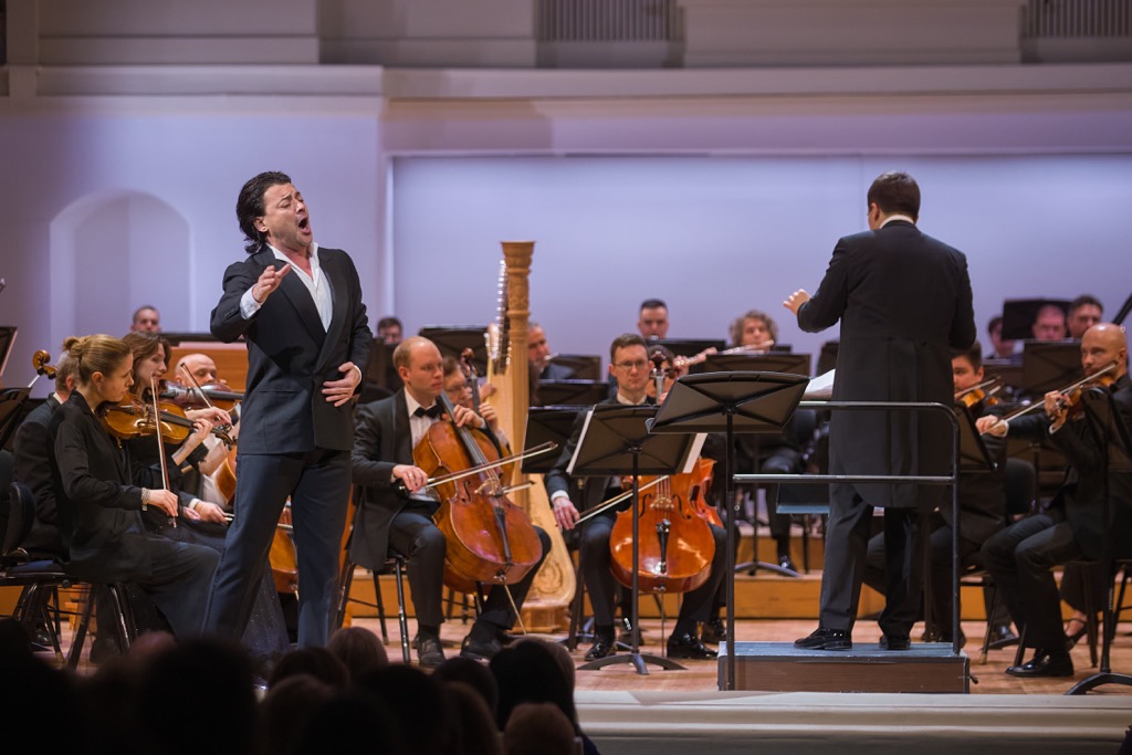 Между тем маэстро Зангиев легко и непринужденно нашел контакт с этой музыкой и в части аккомпанемента солисту. Но как раз о выдержанности вокального стиля, хотя что-то певцу удавалось лучше, а что-то – хуже, говорить очень сложно: на самом деле, невозможно. Звездный тенор начал программу с Гуно – с каватины Фауста «Salut! Demeure chaste et pure» из одноименной оперы и cвязки речитатива и каватины Ромео «L’amour, l’amour! … Ah! Lève-toi, soleil» из «Ромео и Джульетты». Со стилем французской лирической оперы и образами лирических героев, заключенных в сферу податливо пластичного, рафинированного мелоса, пережатость, чрезмерная жесткость звучания исполнителя требуемой корреляции не нашла, а коварная фермата в каватине Фауста – извечный подводный риф всех теноров – была взята им пронзительно и «сдавленно», так что ни о каком упоении для слуха речи быть не могло.