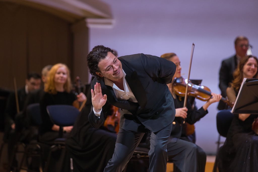 Про эстраду в нашем обзоре – принципиально ни слова, но, прежде чем начать разговор о прозвучавших ариях из опер, скажем о потрясающем оркестровом аккомпанементе кумиру и об изумительно стильно и ярко прозвучавших оркестровых фрагментах, которые не просто дежурно разбавили вокальную программу, но и восхитительно эффектно дополнили ее! И это также была французская музыка. Так, из опусов Гуно прозвучали грациозный вальс из «Фауста» (на сей раз без хоровой составляющей), завораживающая интродукция и бравурная «Вакханалия» из балетной сюиты «Вальпургиева ночь» из этой оперы плюс лирический антракт ко второму акту «Ромео и Джульетты».