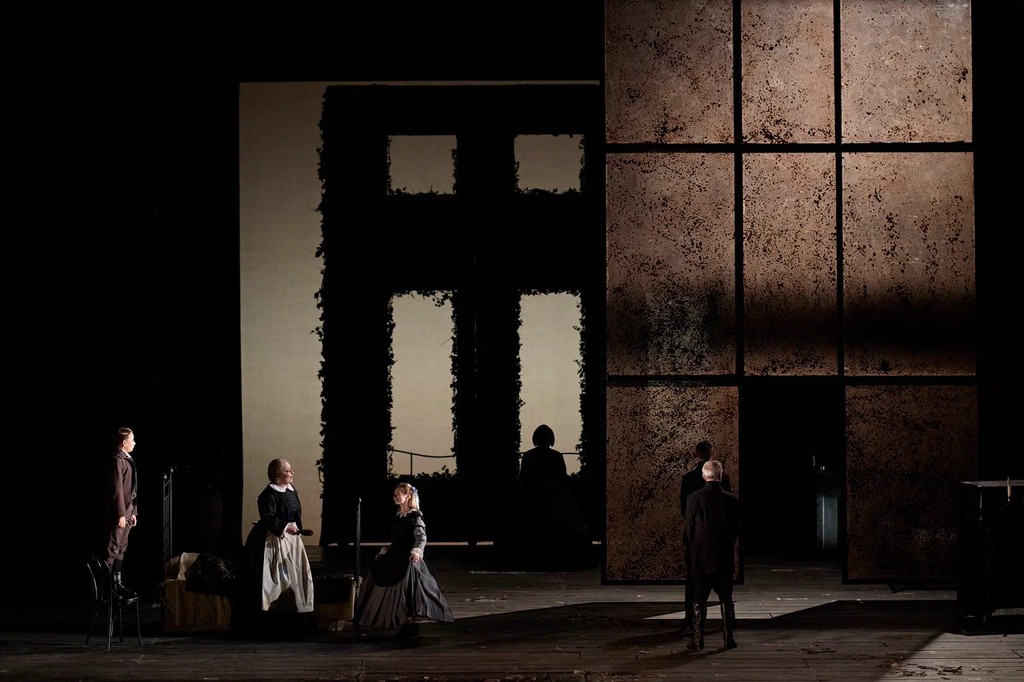 В мире этой оперы недосказанность становится правилом: персонажи замирают на полуслове, скрываются, боятся. Они обитают в поместье, где царит атмосфера скованности и безысходности. Дети оказываются вовлечены в тайну, соприкасаются с миром взрослым — слишком жестоким и небезопасным.