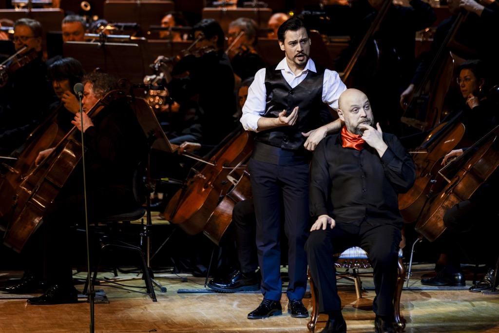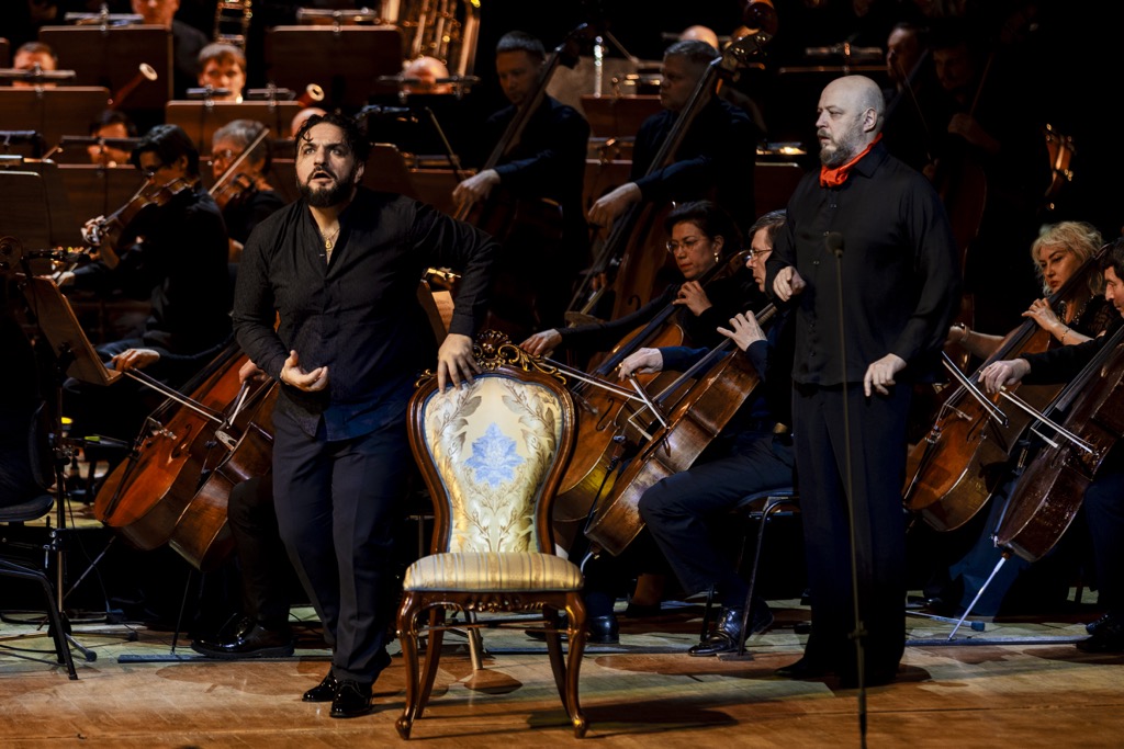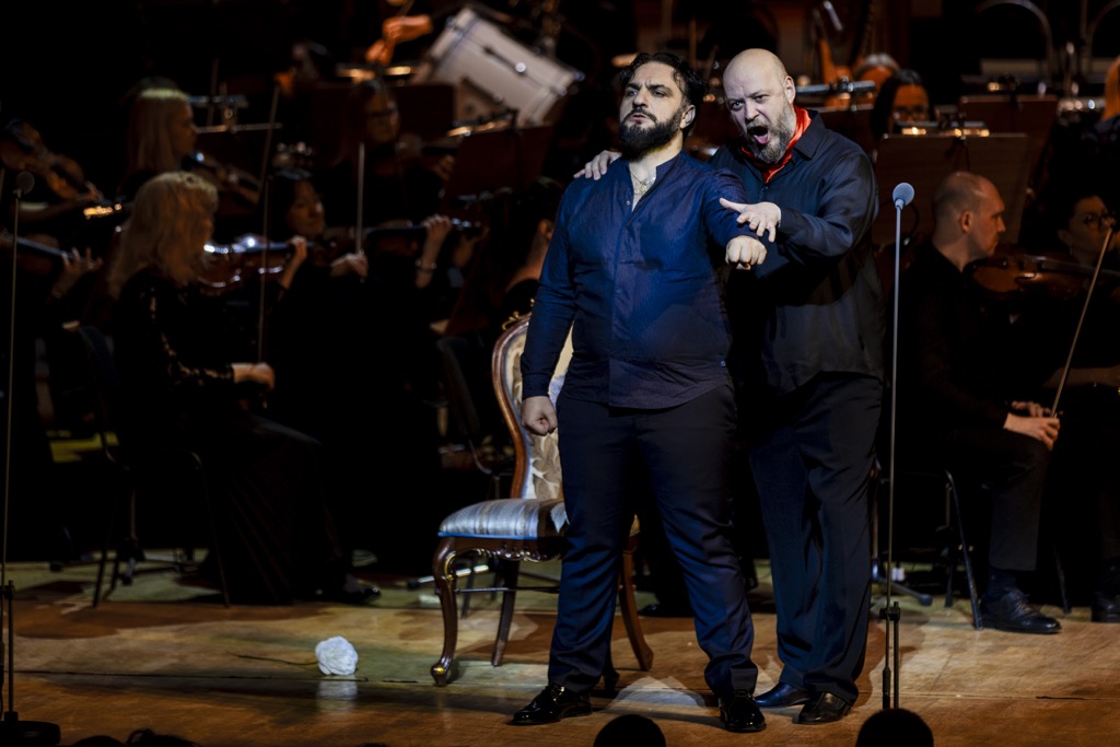 Несмотря на то, что концертная версия изначально не предполагает костюмов и декораций, «Отелло» был максимально приближен к полноценному оперному спектаклю режиссерской фантазией Екатерины Ароновой, изобретательно поставившей мизансцены и подготовившей с помощью «искусственного интеллекта» видеодекорации. Оркестр и хор (главный хормейстер — Юрий Карпов), ведомые итальянским дирижером Марко Боэми, звучали на должном уровне, став достойной оправой великолепному составу исполнителей.