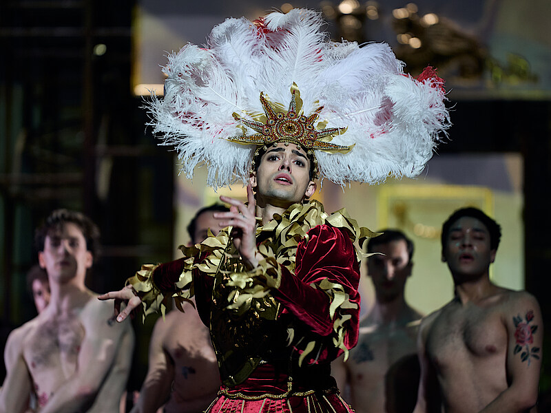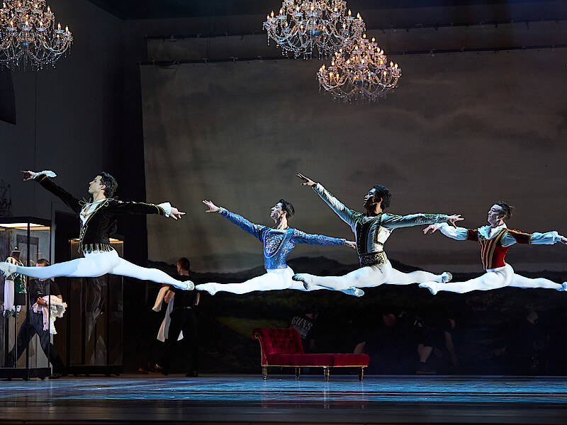 В том же русле развивается и музыка Ильи Демуцкого. Бытовые, барочные, бульварные и джазовые стилизации вызывают в памяти виртуозные эксперименты Альфреда Шнитке и акустически формируют узнаваемый пространственно-временной контекст. В финале I акта мультижанровая ткань партитуры стряхивает флёр иллюстративной пародийности и погружает зрителя во внутренний мир художника, обречённого на служение своему ремеслу. Композитор находит правильный вектор развития музыкальной мысли, рифмуя примитивизм XX века с театральной музыкой века XVII и растворяя свой авторский почерк в произведениях Адана, Чайковского, Малера, Глазунова и Минкуса. Сопровождая восхождение артиста на Голгофу своей профессии, музыка Ильи Демуцкого сама совершает этот путь.