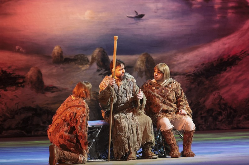 Настоящий обзор посвящен первому из названных показов. За дирижерским пультом – вновь музыкальный руководитель постановки Валерий Гергиев, но на этот раз он оказался во главе объединенного оркестра, хора, мимического ансамбля Большого и Мариинского театров, а также детского хора Большого театра. Режиссер возобновления – Марина Мишук (2003). Сценограф – Евгений Лысык (адаптация Андрея Войтенко). Художники – Надежда Павлова (костюмы) и Владимир Лукасевич (свет). Главные хормейстеры – Валерий Борисов (Большой театр) и Константин Рылов (Мариинский театр). Хормейстеры детского хора – Юлия Молчанова (Большой театр) и Ирина Яцемирская (Мариинский театр).