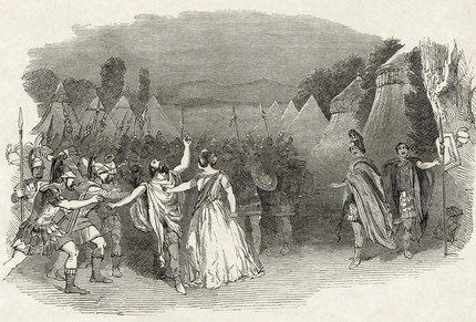 В третьем действии произвела бы огромное впечапиение та сцена, когда Лев находится на Авентинском холме, в то время, как внизу происходит сражение...