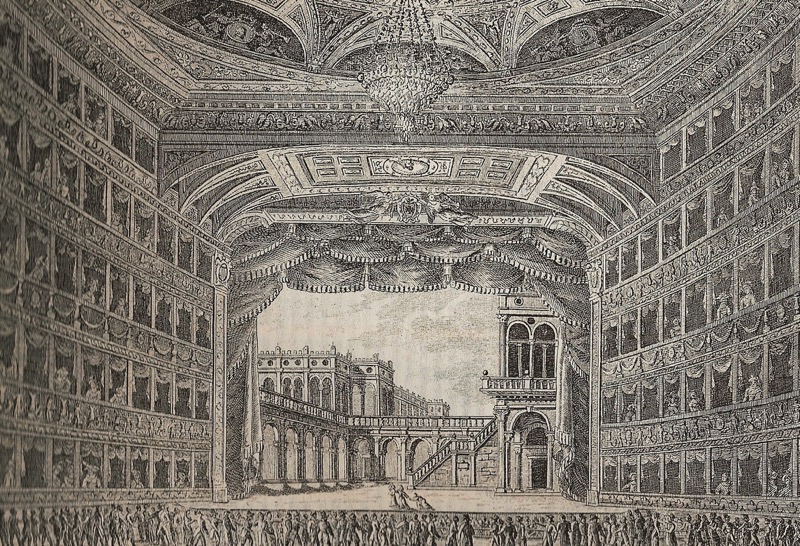 Вот что писал русский путешественник и музыкальный обозреватель о своем посещении этого вновь открытого театра «Ла Фениче»: «Зала, ярко освещенная, отделана с большим вкусом. По белому полю очень удачно рассыпаны золотые арабески. Легкая живопись не вредит общему впечатлению. Императорская ложа богато убрана… все ложи с зеркалами и диванами, очень удобны. Декорации прекрасны, они не могут идти в сравнение с петербургскими» .