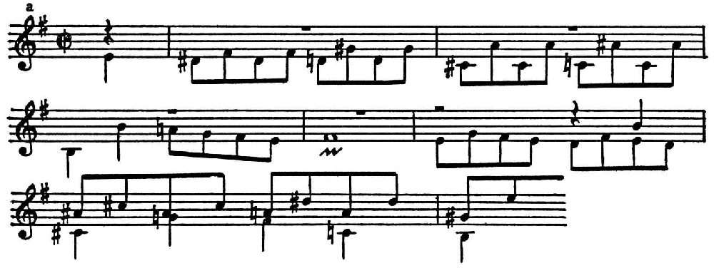 Контрастными считаются темы, основанные на противопоставлении мелодически и ритмически различающихся мотивов (см. пример ниже, а); глубина контраста увеличивается, когда один из мотивов (чаще начальный) содержит ум. интервал (см. примеры в ст. Свободный стиль, колонка 891).