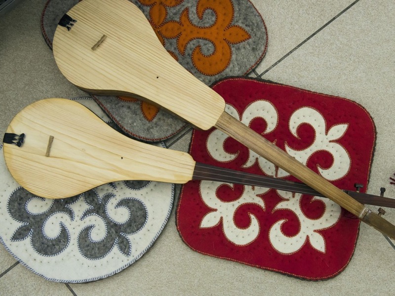 Это самый известный, самый распространенный среди киргизских народных инструментов. И внешне и по звучанию он напоминает домру. У него грушевидный корпус с длинным грифом. Струн у него, как и у домры, три. Две крайние бывают настроены в унисон или октаву, а средняя — всегда на квинту или кварту выше. На средней и исполняется мелодия, крайние же служат для аккомпанемента. Таким образом, комуз — многоголосный инструмент.