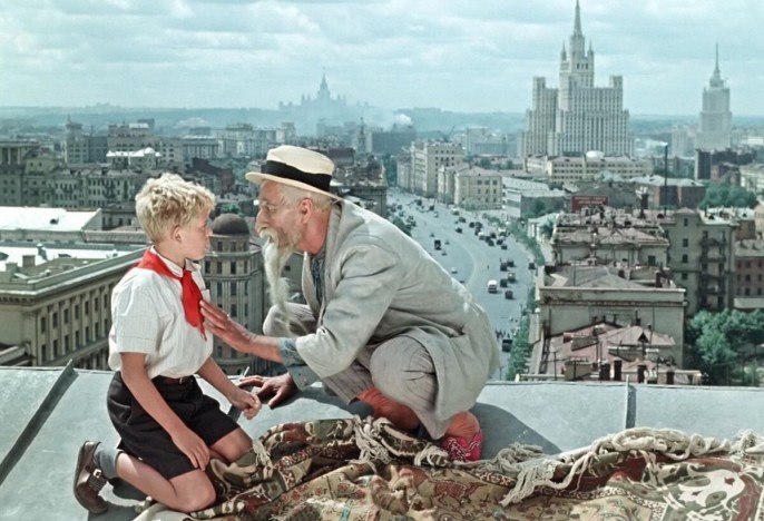 Рассуждая об образцах сталинской послевоенной эстетики, я каждый раз невольно вспоминаю детский фильм — «Здравствуй, Москва!» (1945), который довольно редко освещают в блогах. А киноработа — знаковая.