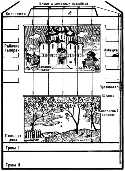 Об оборудовании, связанном с различными сценич. эффектами, см. в статье Эффекты сценические, об устройстве сцены — ст. Сцена.