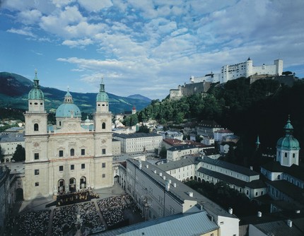 Зальцбург (Salzburg) — город в Австрии, центр земли Зальцбург. Один из старейших муз. центров Европы. В древности на территории З. существовала римская колония. С 739 резиденция епископа, с 798 — архиепископа. В сер. 8 в. З. становится крупным очагом хор. иск-ва. Имеются упоминания уже в то время о работе муз. теоретиков и композиторов. Наряду с церк. музыкой в З. развивается иск-во нар. певцов — миннезингеров, что способствовало проникновению в духовную музыку элементов фольклора. В 13–14 вв. значительное развитие в З. получает многогол. пение, культивировавшееся в придв. капелле и соборах. В кон. 14 — нач. 15 вв. в старом романском соборе был установлен первый большой орган с 2024 трубами, в 1502 в соборе Санкт-Петер — орган «Золотой телец» (сохранился до настоящего времени, обновлялся и реконструировался в 18 в.). Начиная с 14 в. в З. живут и работают мн. мастера по изготовлению муз. инструментов — органов, колоколов и др. Среди первых известных органистов З. — Якоб фон Грац (15 в.), мастеров муз. инструментов — В. Гартнер и его сын М. Гартнер (16 в.).