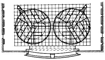 Колосники — верхняя часть сцены (высота не менее 2 м), служащая для установки блоков сценич. механизмов и для работ, связанных с подвеской элементов оформления спектакля. Над колосниками помещаются дымовые люки (см. Люки дымовые). Основная сцена (по высоте в 3 раза больше зеркала сцены) занимает пространство между колосниковой решёткой и планшетом сцены. Она состоит из т. н. игровой (или средней) сцены, доходящей до уровня высоты зеркала сцены, и верхней сцены, находящейся выше зеркала сцены и служащей для размещения навесных декораций, приборов верхнего освещения, разл. сценич. механизмов. Верхняя сцена оборудована рабочими (или машинными) галереями и переходными мостиками.