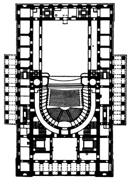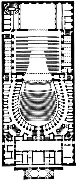 План зала и вестибюля театра Большой Парижской оперы («Гранд-Опера»)